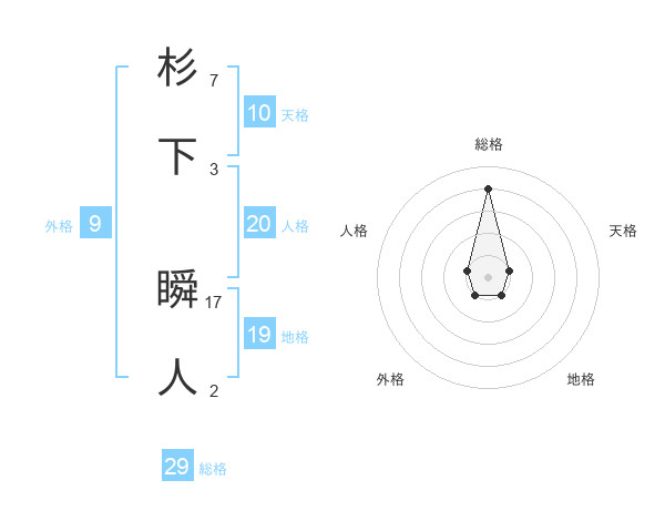杉下 瞬人さんを姓名の画数から五運を鑑定