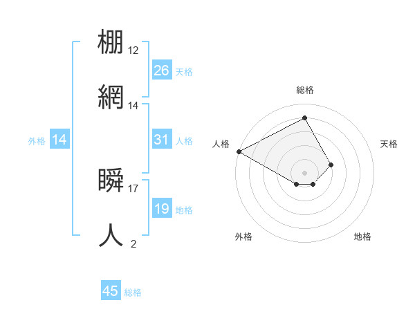 棚網 瞬人さんの総格は45画の4点!
