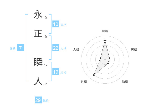 永正 瞬人さんを姓名の画数から五運を鑑定