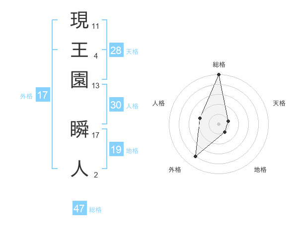 現王園 瞬人さんを姓名の画数から五運を鑑定