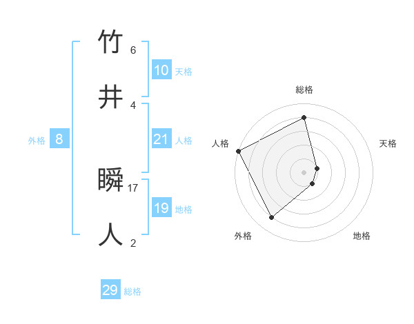 竹井 瞬人さんの総格は29画の4点!