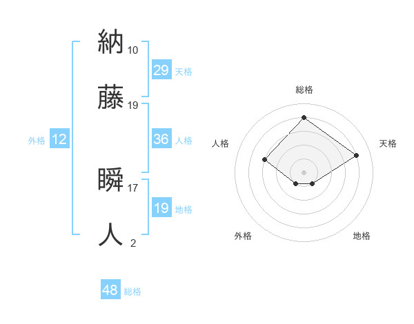 納藤 瞬人さんの総格は48画の4点!