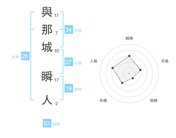 與那城 瞬人さんの総格は53画の3点!