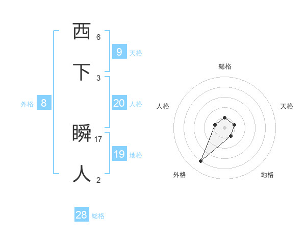 西下 瞬人さんを姓名の画数から五運を鑑定