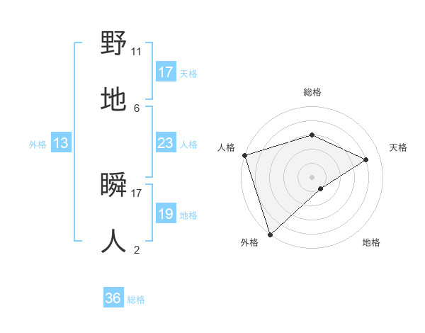 野地 瞬人さんを姓名の画数から五運を鑑定