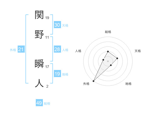 関野 瞬人さんを姓名の画数から五運を鑑定