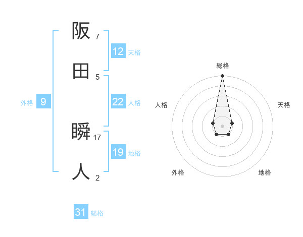 阪田 瞬人さんの総格は31画の5点!