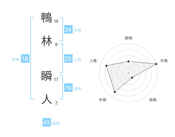 鴨林 瞬人さんを姓名の画数から五運を鑑定