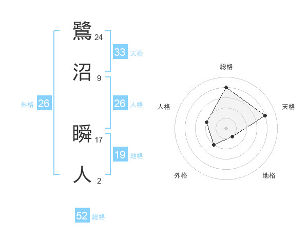 鷺沼 瞬人さんの総格は52画の4点!