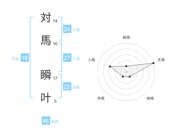 対馬 瞬叶さんの総格は46画の1点!