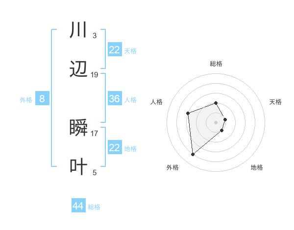 川辺 瞬叶さんの総格は44画の2点!