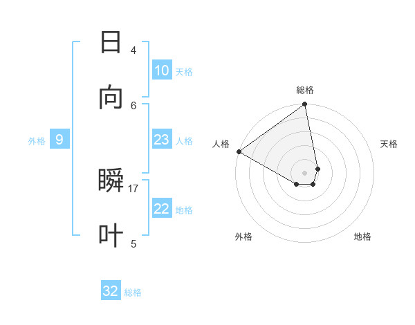 日向 瞬叶さんの総格は32画の5点!