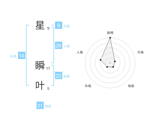 星 瞬叶さんの総格は31画の5点!