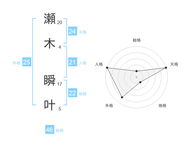 瀬木 瞬叶さんを姓名の画数から五運を鑑定