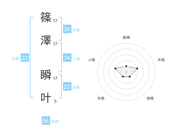 篠澤 瞬叶さんを姓名の画数から五運を鑑定