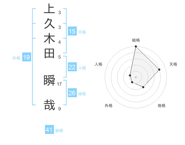 上久木田 瞬哉さんを姓名の画数から五運を鑑定
