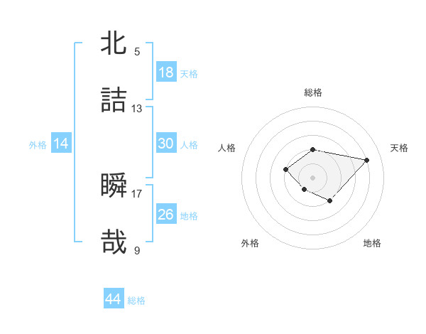 北詰 瞬哉さんを姓名の画数から五運を鑑定