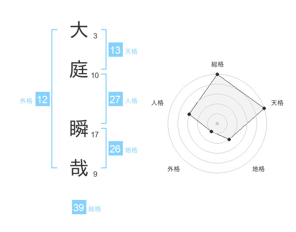 大庭 瞬哉さんの総格は39画の5点!