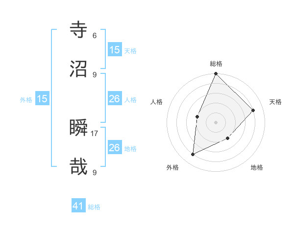 寺沼 瞬哉さんの総格は41画の5点!