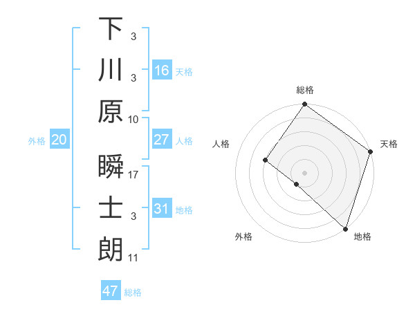 下川原 瞬士朗さんを姓名の画数から五運を鑑定