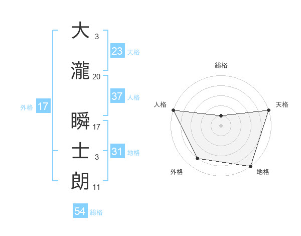 大瀧 瞬士朗さんを姓名の画数から五運を鑑定