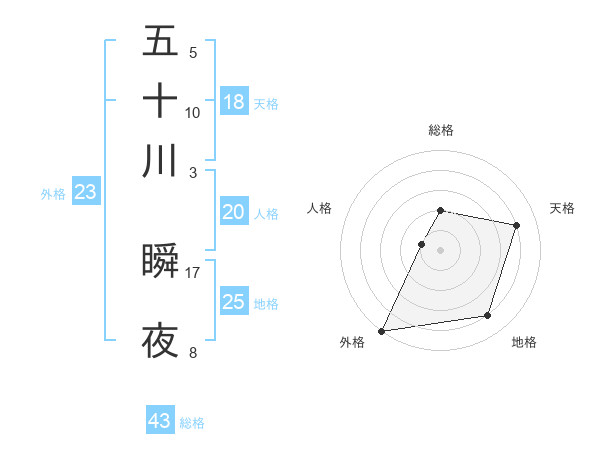 五十川 瞬夜さんを姓名の画数から五運を鑑定