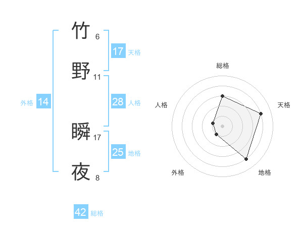 竹野 瞬夜さんの総格は42画の3点!