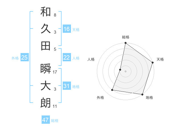 和久田 瞬大朗さんを姓名の画数から五運を鑑定