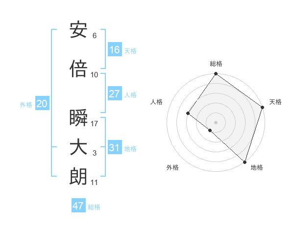 安倍 瞬大朗さんを姓名の画数から五運を鑑定