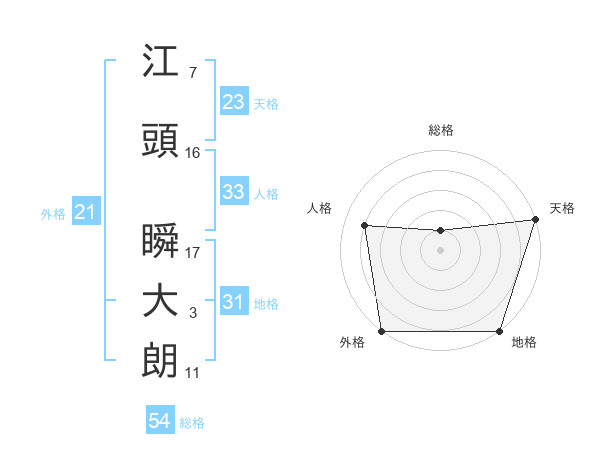 江頭 瞬大朗さんを姓名の画数から五運を鑑定