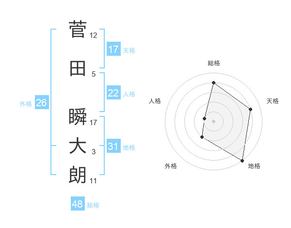 菅田 瞬大朗さんの天格は17画の4点!