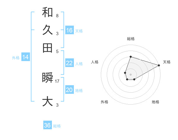 和久田 瞬大さんを姓名の画数から五運を鑑定