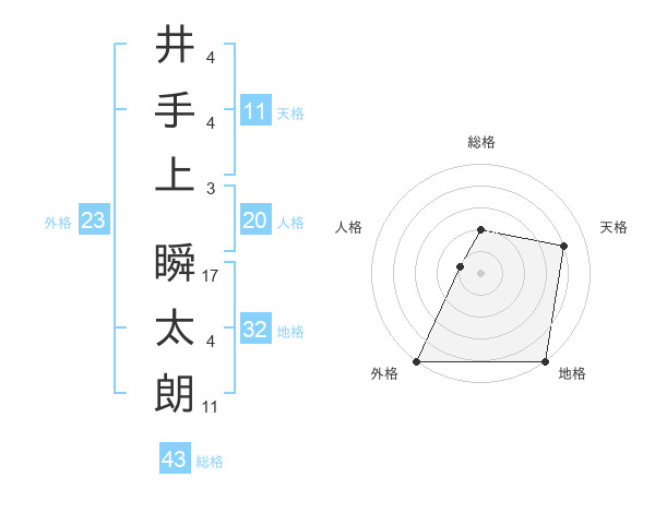 井手上 瞬太朗さんを姓名の画数から五運を鑑定