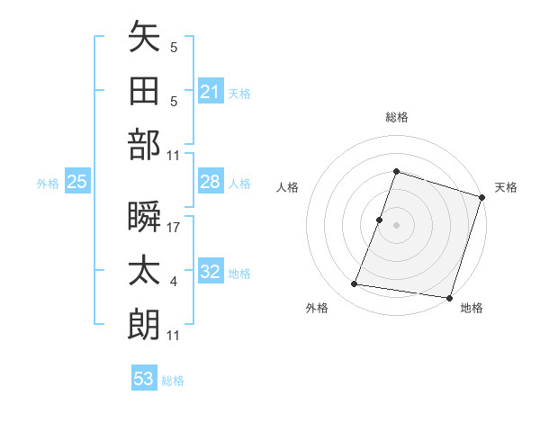 矢田部 瞬太朗さんの総格は53画の3点!