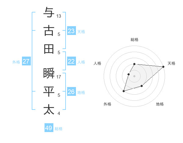 与古田 瞬平太さんを姓名の画数から五運を鑑定
