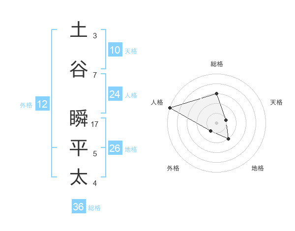 土谷 瞬平太さんを姓名の画数から五運を鑑定