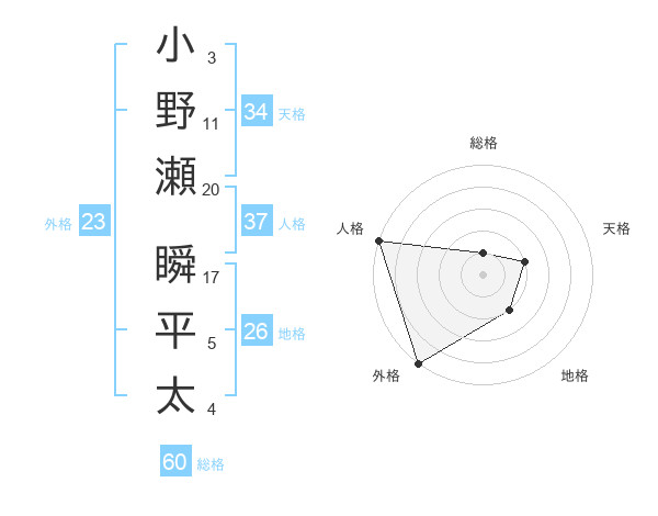 小野瀬 瞬平太さんを姓名の画数から五運を鑑定