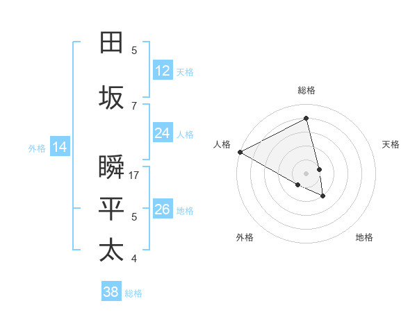 田坂 瞬平太さんの総格は38画の4点!