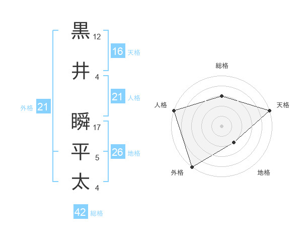 黒井 瞬平太さんを姓名の画数から五運を鑑定