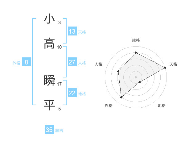 小高 瞬平さんを姓名の画数から五運を鑑定