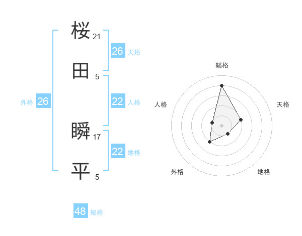 桜田 瞬平さんを姓名の画数から五運を鑑定