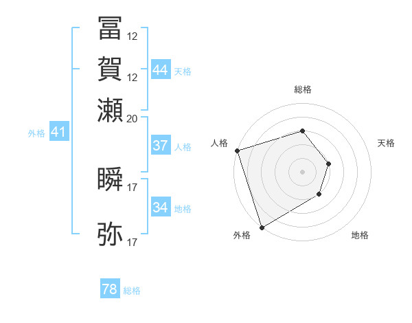 冨賀瀬 瞬弥さんの総格は78画の3点!