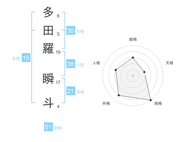 多田羅 瞬斗さんを姓名の画数から五運を鑑定
