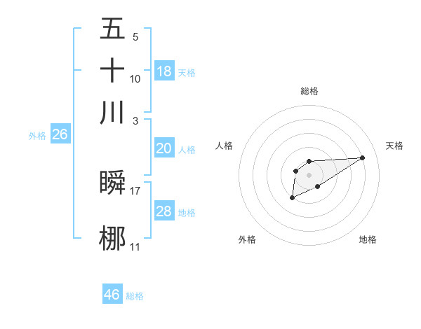 五十川 瞬梛さんを姓名の画数から五運を鑑定