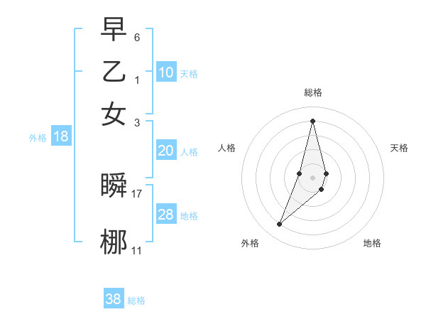 早乙女 瞬梛さんを姓名の画数から五運を鑑定