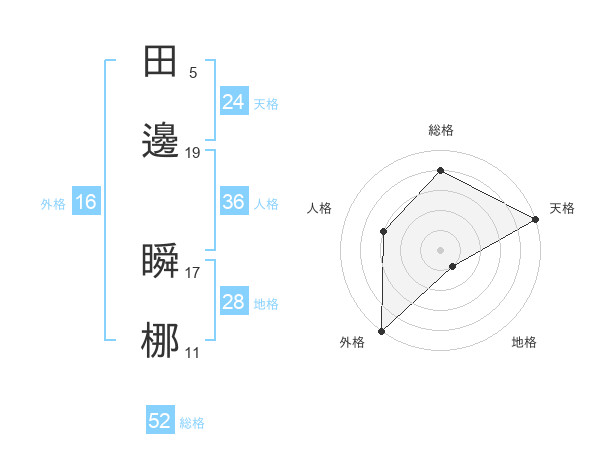 田邊 瞬梛さんを姓名の画数から五運を鑑定