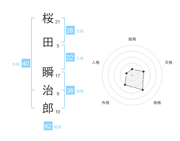 桜田 瞬治郎さんを姓名の画数から五運を鑑定