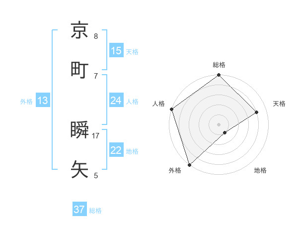 京町 瞬矢さんの外格は13画の5点!