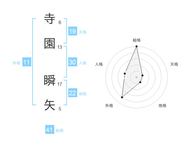 寺園 瞬矢さんの総格は41画の5点!