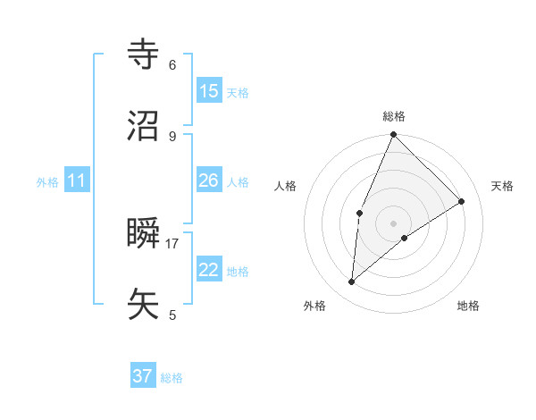 寺沼 瞬矢さんを姓名の画数から五運を鑑定